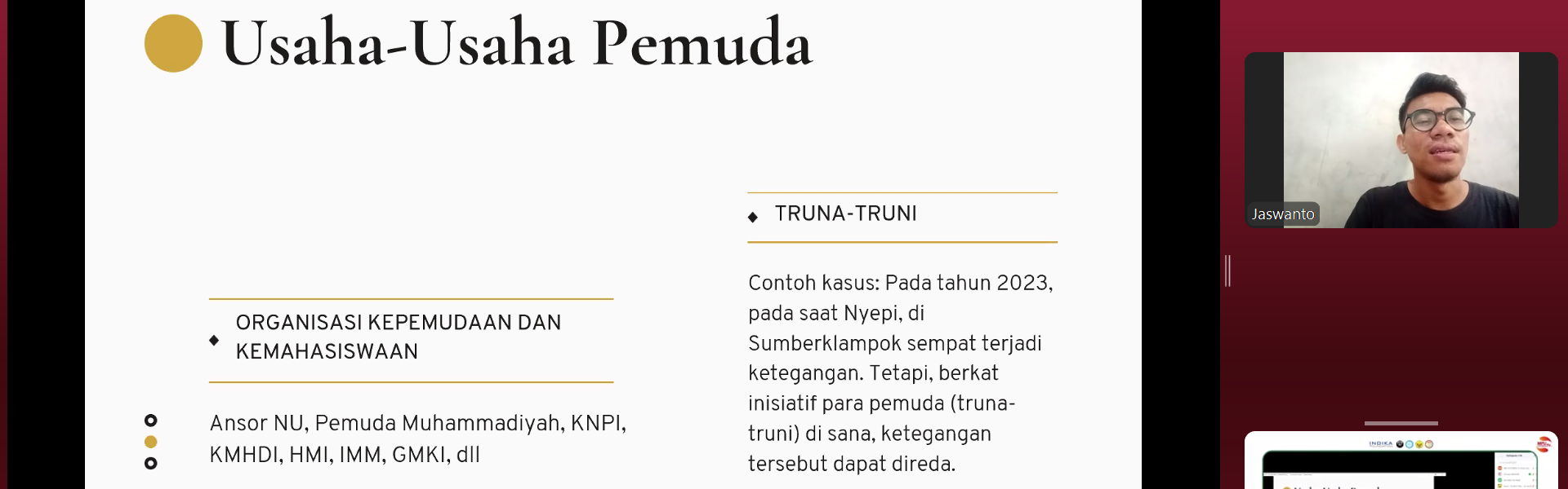 “Webinar ini merupakan langkah awal yang baik untuk membangun masyarakat yang harmonis dan damai. Namun, hal utama yaitu pentingnya untuk menggabungkan webinar ini dengan tindakan nyata dan berbagi pengetahuan dengan masyarakat,” ucap ayu.***